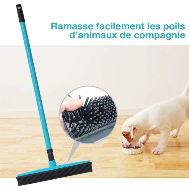 Découvrez MABALAI™ la brosse de nettoyage ultime en caoutchouc, un balai avec raclette intégrée qui nettoie les tapis, les poils de chien, les planchers et plus encore.